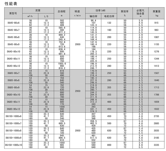 DG系列鍋爐給水泵作為次高壓鍋爐給水或其它高壓給水之用。輸送介質(zhì)溫度不超過160℃。